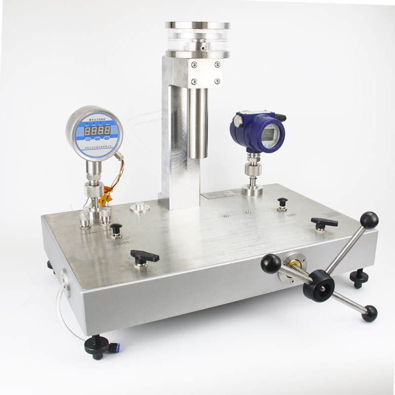 ???氣體活塞壓力計是高準確度壓力標準器,用氣體做工作介質,可測量和校準表壓、絕壓、真空壓力(負壓)等。活塞壓力計系統采用碳化鎢材質。從而保證活塞具有不銹、耐磨和使用壽命長的特點。用氣體做工作介質的活塞壓力計與用液體做工作介質的活塞壓力計相比較,由于它們使用的?工作介質不同,所以氣體活塞壓力計活塞的自轉延續時間長、靈敏度高、重復性好,測量數據準確可靠。